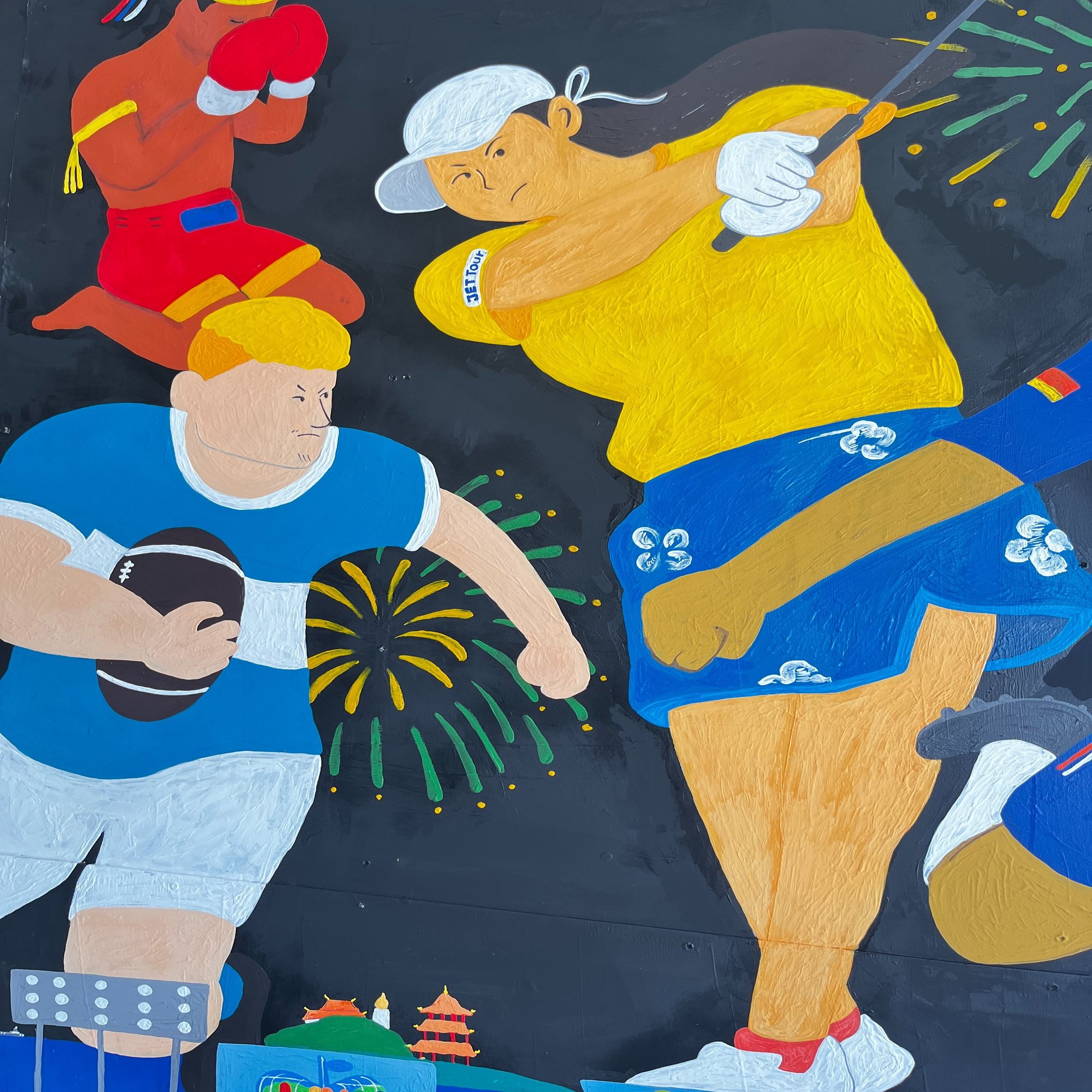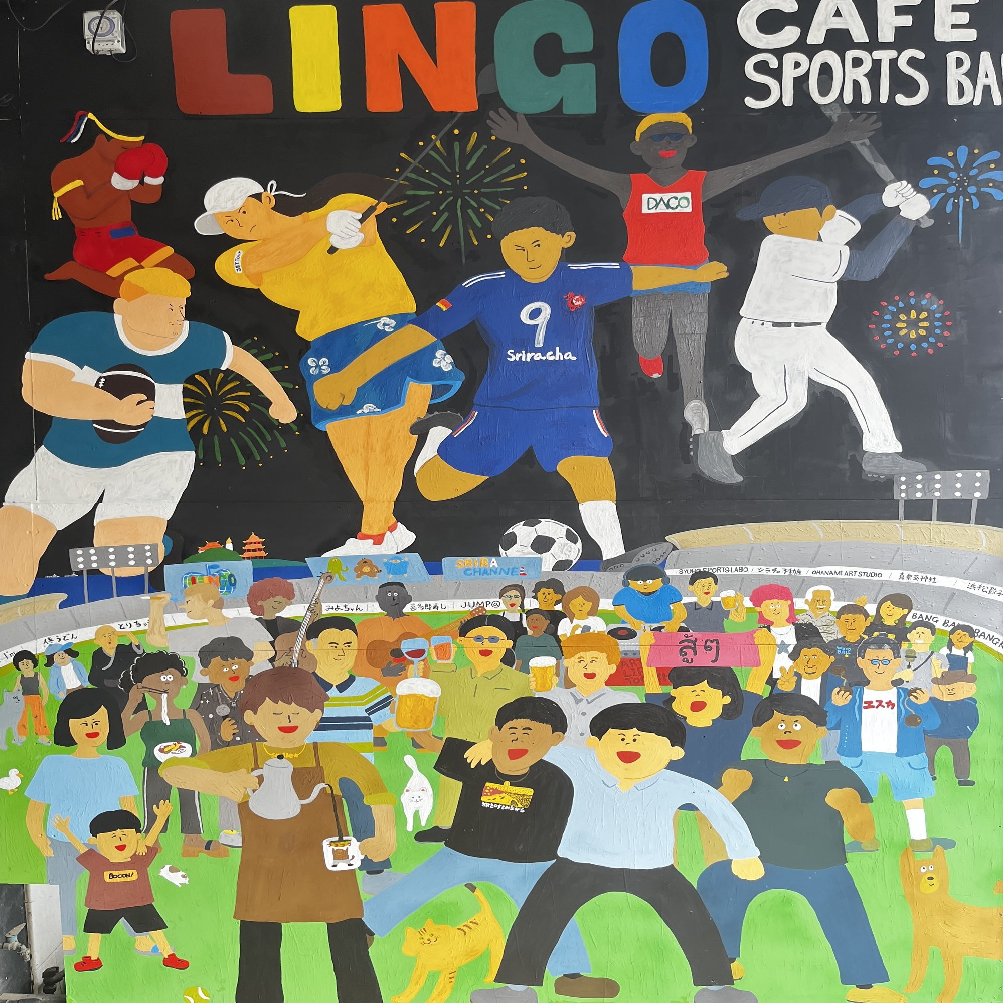 シラチャにあるスポーツバー&カフェのお店の壁に絵を描きました🎨